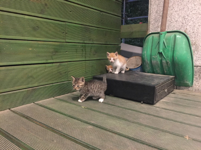 제가 운동하는 헬스장인데 2층 입구 테라스 구석에 종이박스 안에 어미 고양이와 새끼 고양이 4-5마리가 있어요