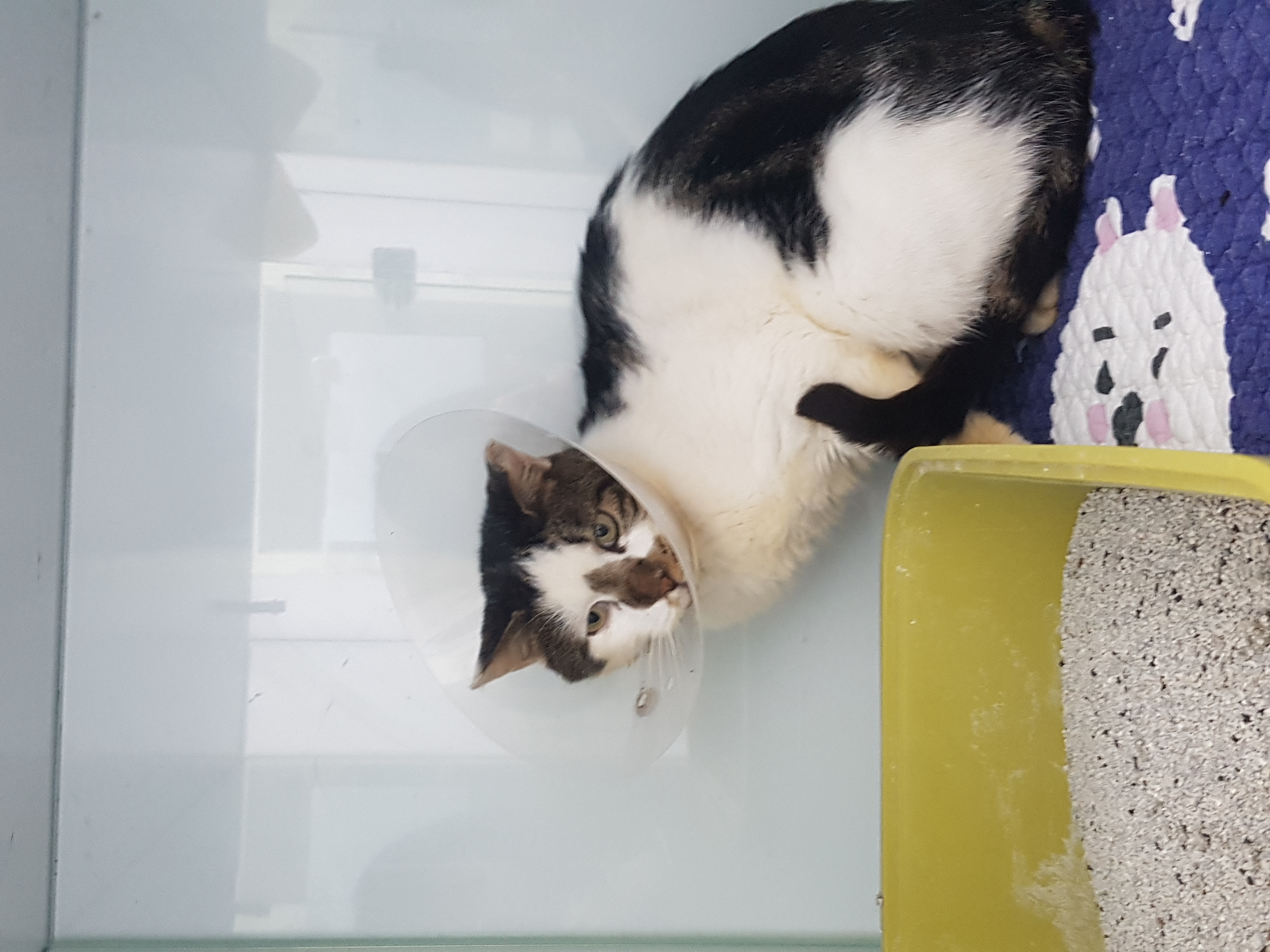 수술하고 난 뒤 상태는 어떤지 검사를 해야하는데 아이가 생각보다 경계심이 많아서 어쩔수없이 살짝 재우고 검사 및 인터페론 주사처치를 했고 그 후로는 경계심도 조금씩 줄어들고 크게 아파하거나 불편해하지 않고 밥도 잘 먹는다해서 수액은 제거하고 입원만 진행했습니다