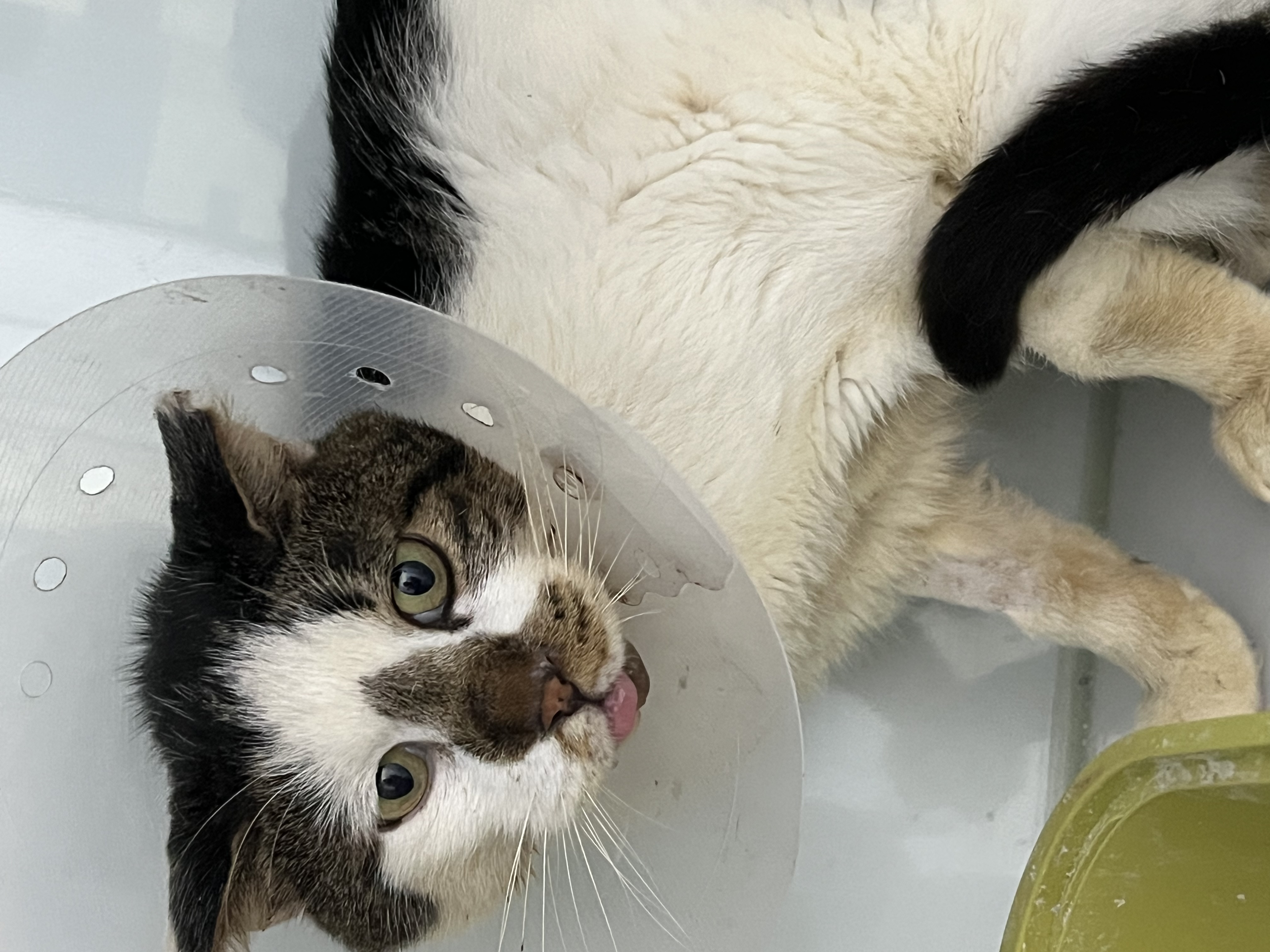 이대로 실패하나 철수할까.. 그래도 조금만 더 기다려보자 하여 1시간을 넘게 서로 비에 젖어가며 대치하다 겨우 구조에 성공, 바로 동물병원으로 데려가서 입원을 시키고 다음날 원장님께서 출근하셔서 수술에 필요한 검사를 하시고 건강상 큰 이상이 없다 판단하여 바로 전발치 수술과 중성화 수술을 같이 했습니다