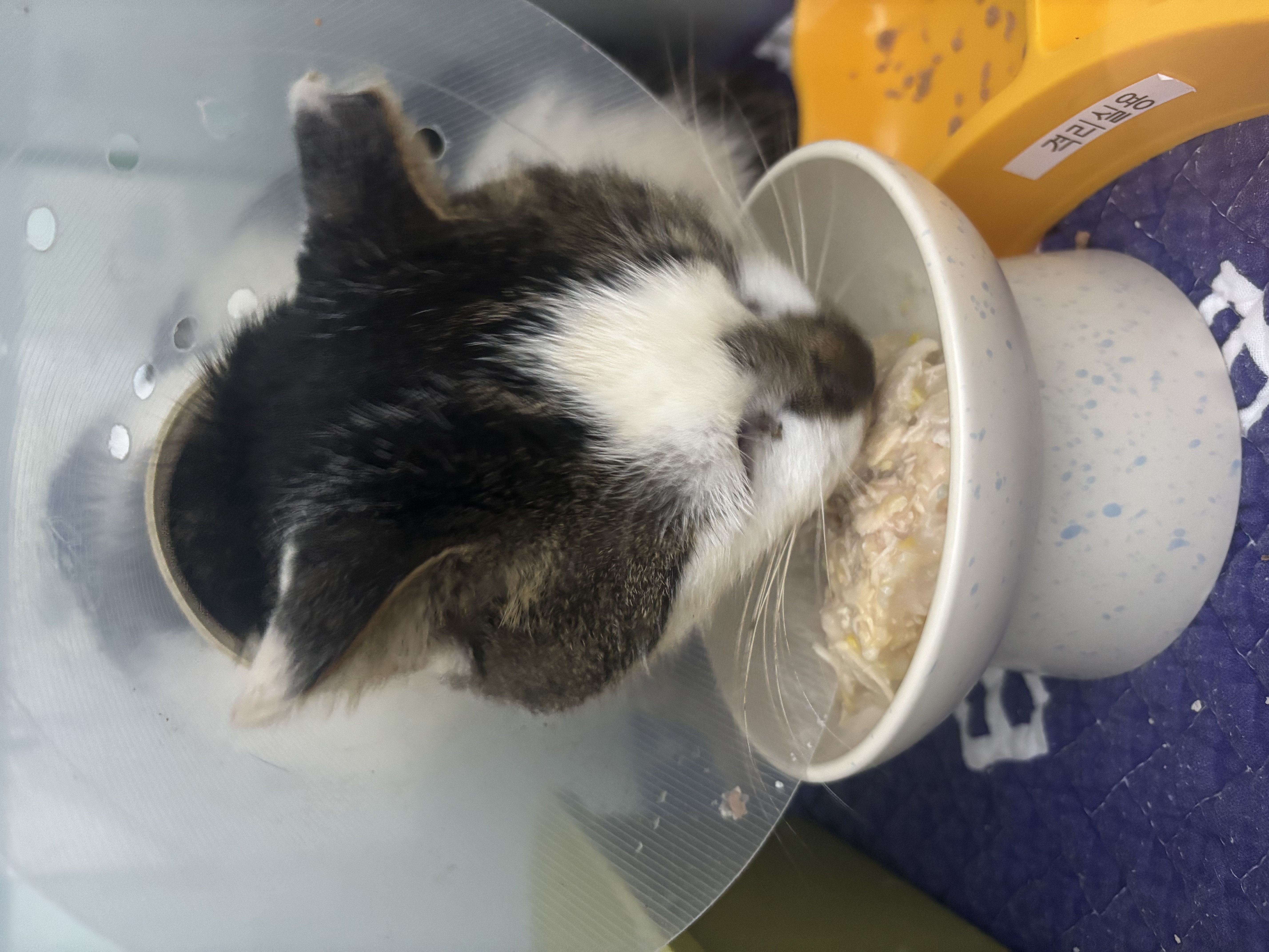 저희집에서는 케어를 해줄수없어 병원에 2주 조금안되게 입원하면서 중간중간 체크도 해주시고 컨디션이 어느정도 좋아졌을땐 예방접종도 한차례 진행했습니다