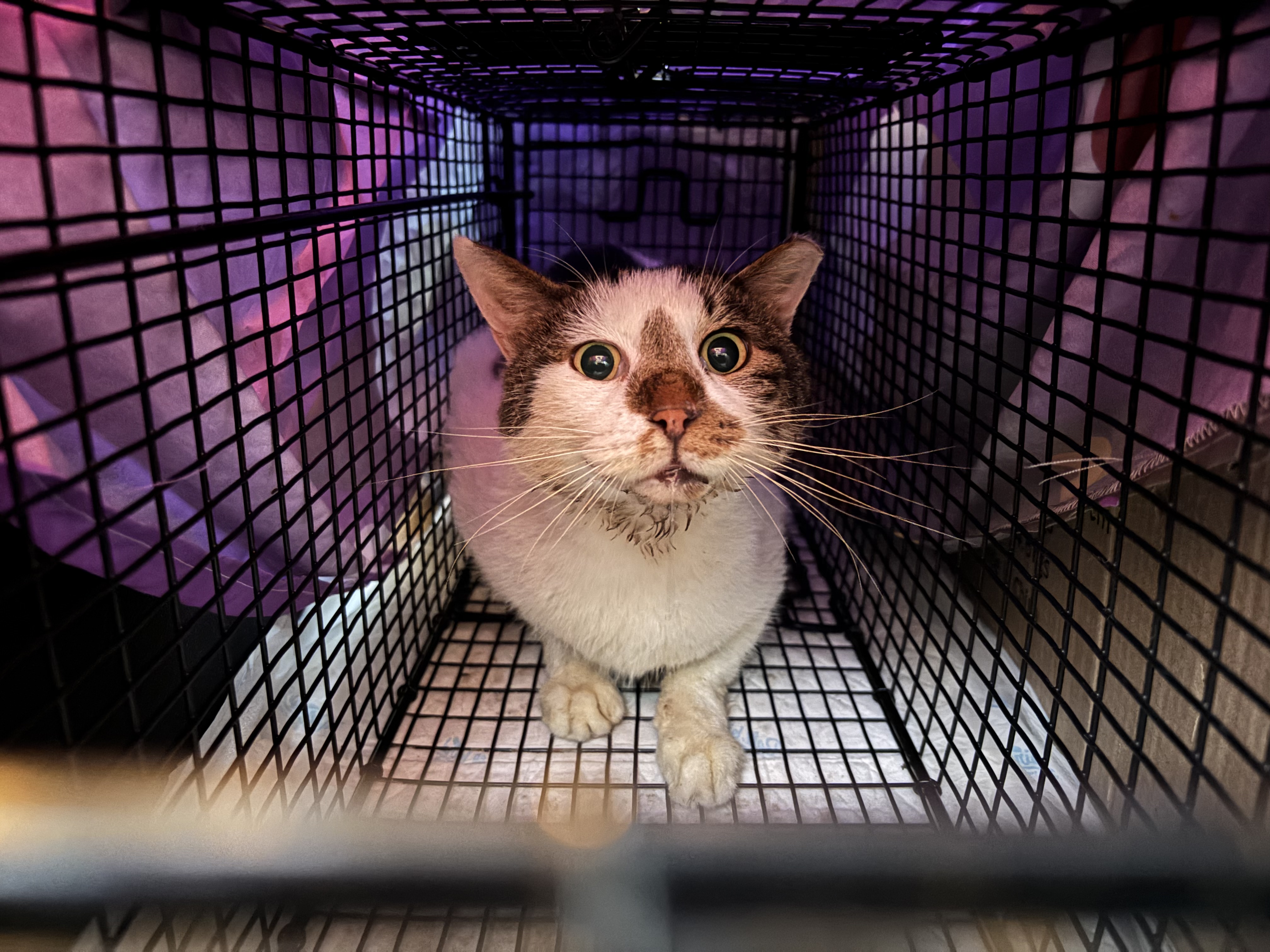 치료완료후 케어계획 25일 저녁에 퇴원을 시키고 밥자리로 갔습니다 약 2주 조금안되는 시간동안 입원을 했어서 냄새에 익숙해지라고 포획틀에 넣어 커버만 살짝 열어줬어요
