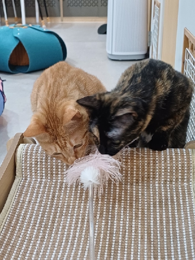뉴페이스 고양이가 둘이나! 꼬꼬가 가만히 있을리 없죠.