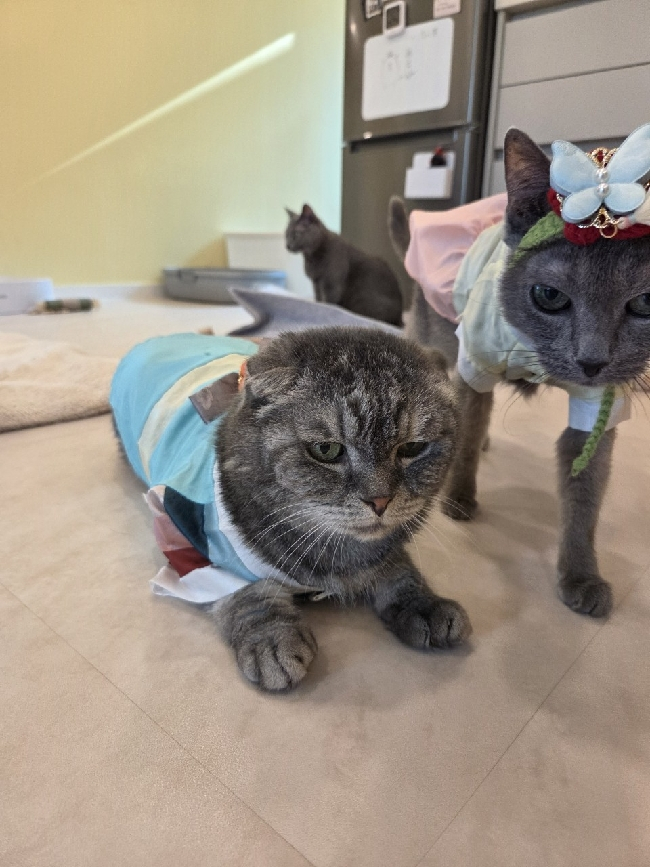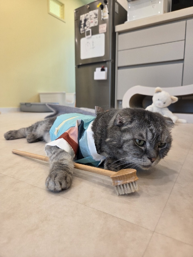 달리 환묘복은 세탁해서 잠시 한 치수 작은 거 찾아 입혔을 뿐인데