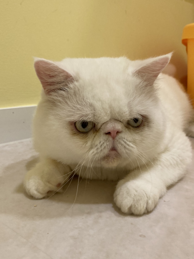 약물 치료를 진행하고 있는데요! 익숙하지 않아 살짝 시무룩한 표정입니다.