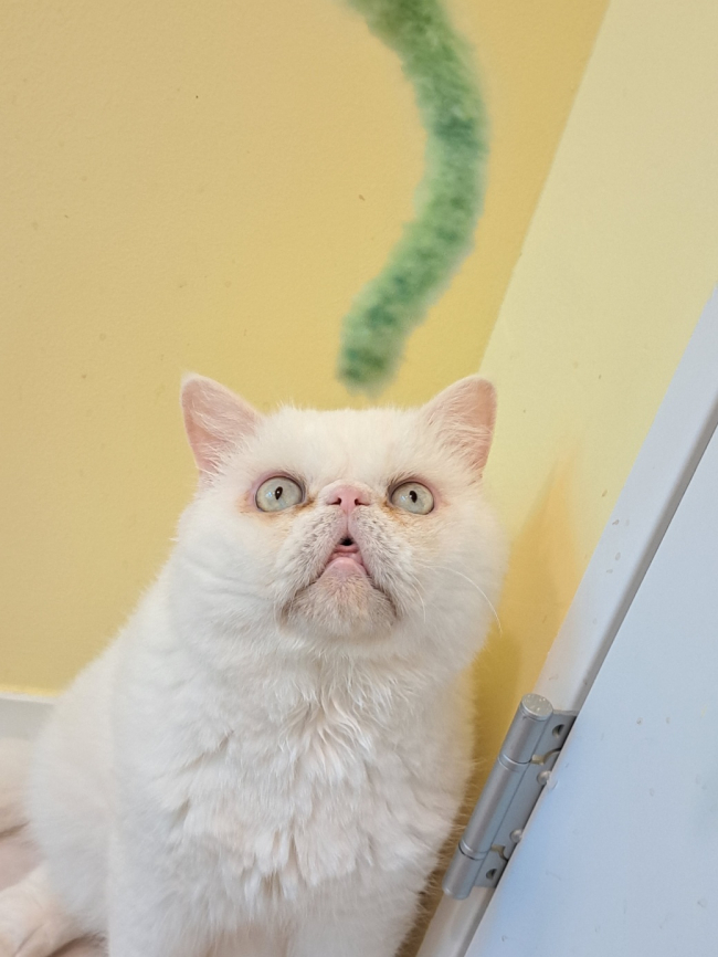 기분이 좋은지 선반에 올라와 고개를 한껏 들고 만져달라고 어필을 하고 있어요.