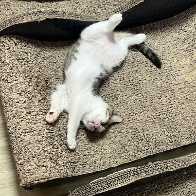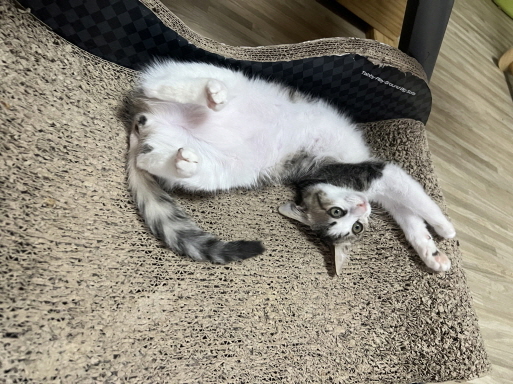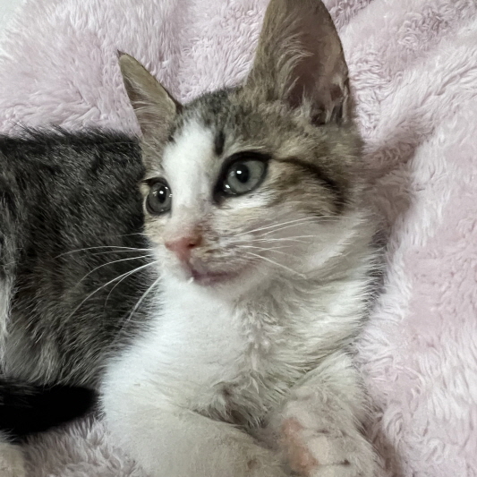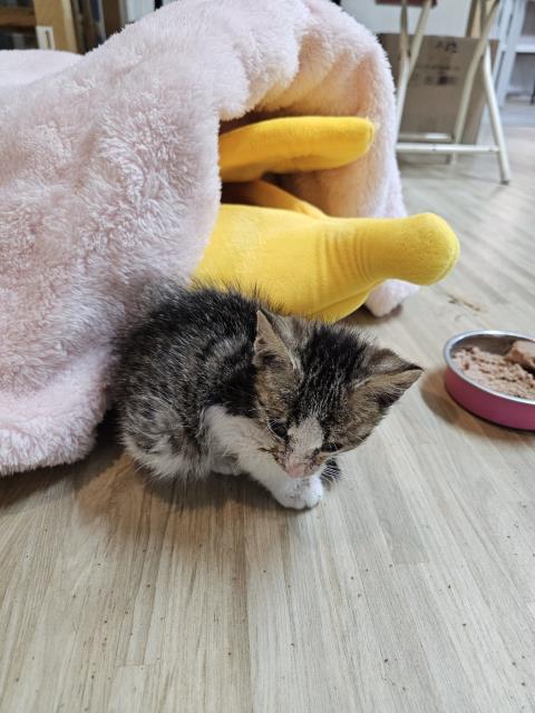 호흡기 질환을 갖고 있어 보살핌이 필요한 아기 고양이예요.