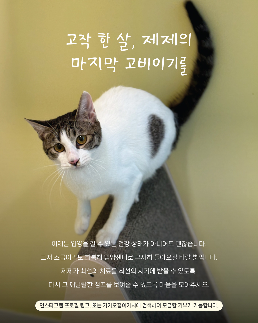 제제가 최선의 치료를 최선의 시기에 받을 수 있도록, 다시 그 깨발랄한 점프를 보여줄 수 있도록 여러분의 마음을 모아주세요