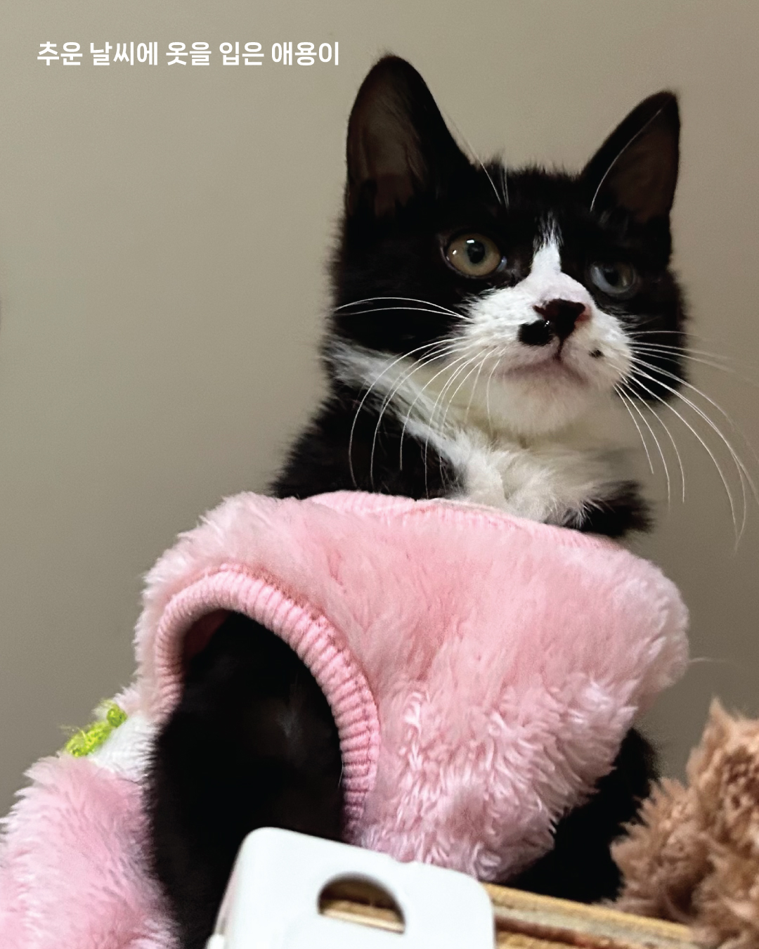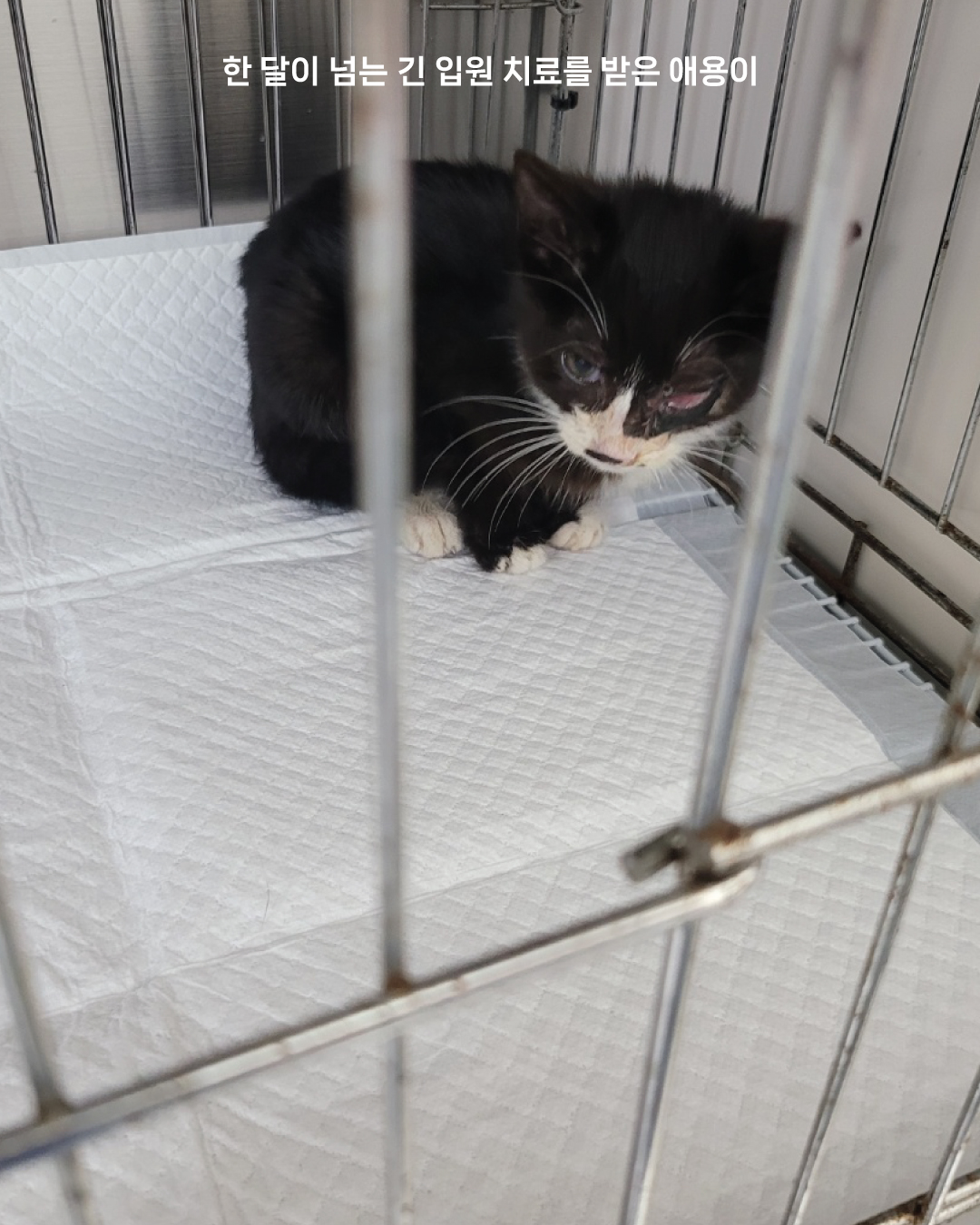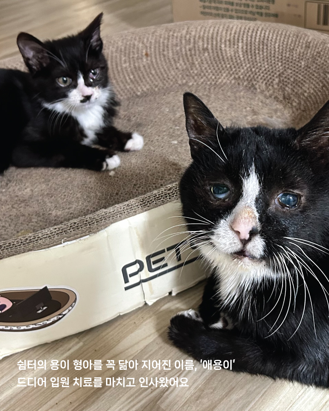 그렇게 무사히 퇴원한 뒤 쉼터에 입소한 애용이는 아직 눈 상태가 완전히 회복되지는 않았지만 우리는 여전히 희망을 품고 있습니다.