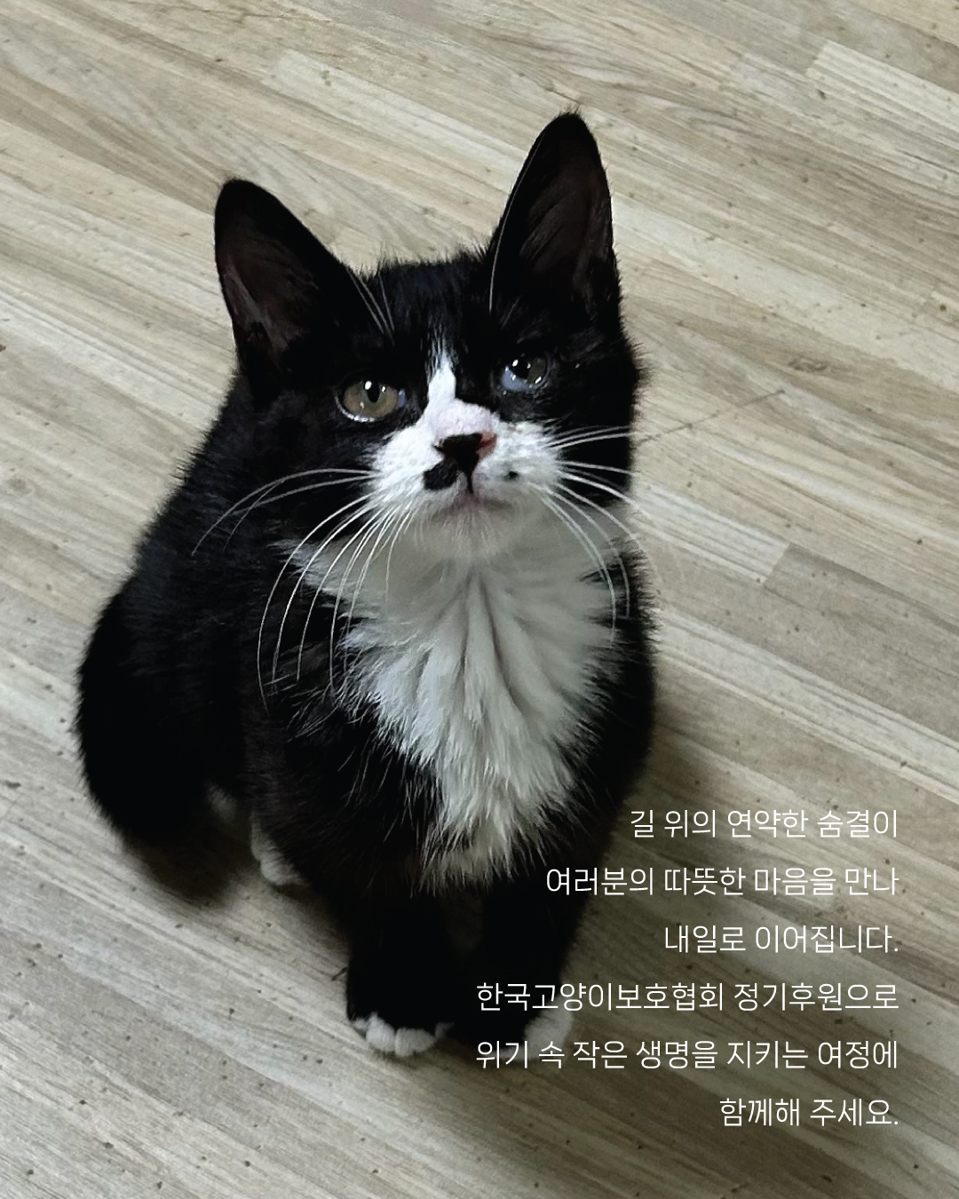 어린 고양이들은 구조 직후 곧바로 치료를 시작하더라도, 하루아침에 별이 되는 안타까운 경우가 많습니다. 심각한 상태에 걱정이 앞섰지만, 이 작은 생명의 행복한 앞날을 응원하며 이름을 지어주었습니다.