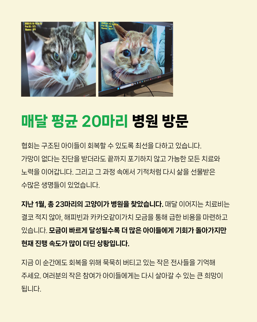 지난 1월, 총 23마리의 고양이가 병원을 찾았습니다.