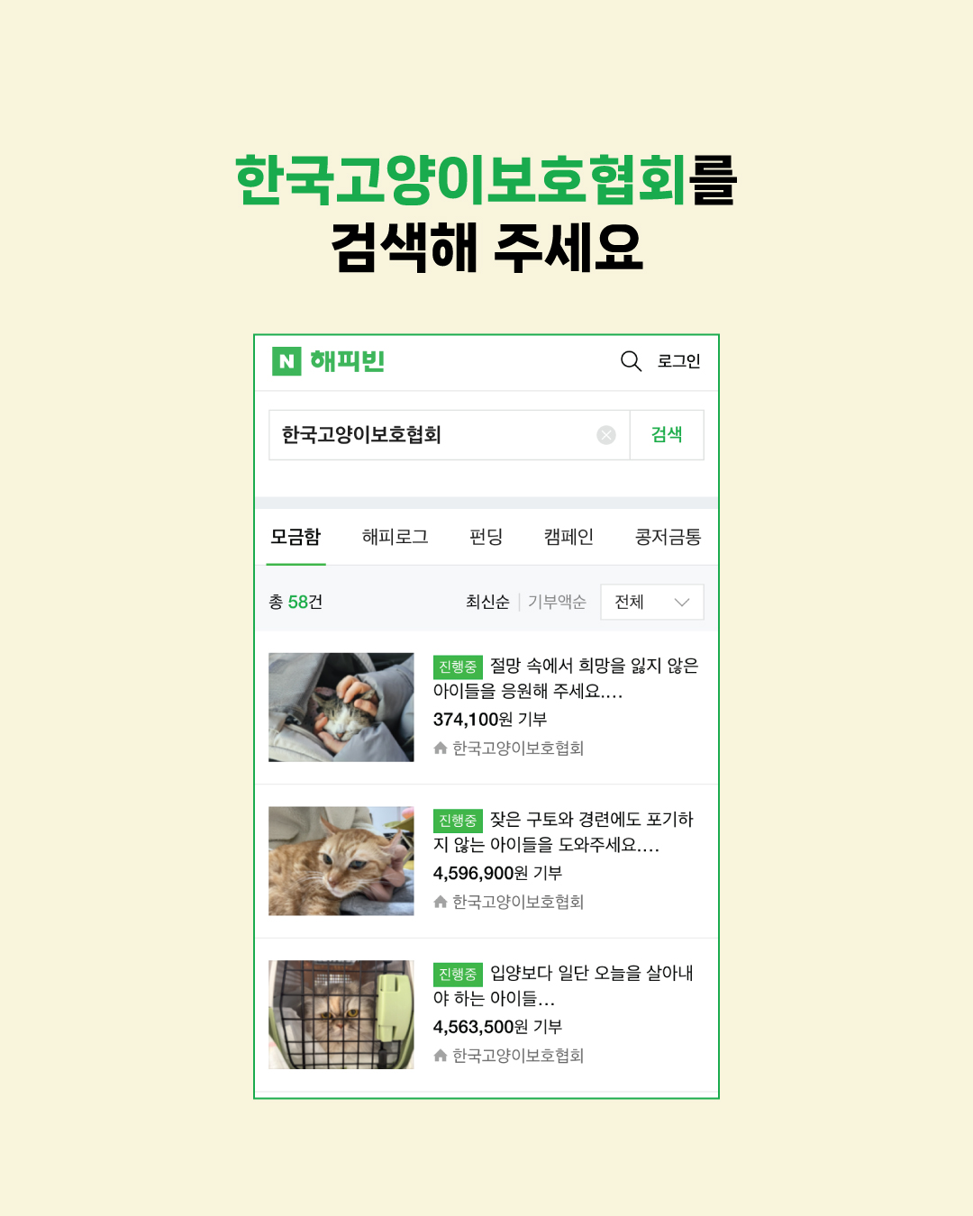 해피빈 접속 > 한국고양이보호협회 검색
