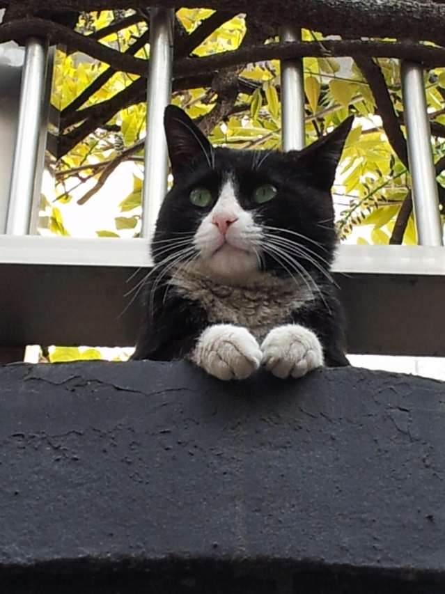 우리 동네 대장냥이 세요.. 중성화이후에도 대장을 유지하고 있었는데.. 최근 어디서 묘한(저 아래사진) 녀석땜시 좀 바빠졌죠.. 숄을 두른 듯한 멋진 턱시도와 스킨스쿠버 모양의 옷을 입고 있어요.. 그래서 깜장팬티라고.. 불러요.ㅎ 엉덩이 양쪽으로 하얀 줄무니......