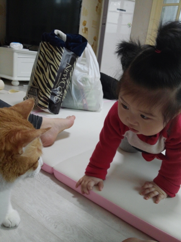아가는 냥이들을 마니 좋아하는데, 표현이 서툴러서 그런지 냥이들은 아가만 오면 줄행랑이네요 ㅋㅋㅋ