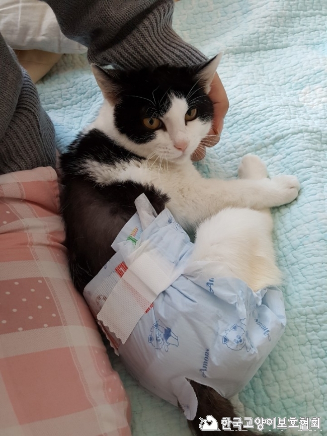 후지를 쓸 수 없고, 대소변을 가리지 못 해 기저귀를 한 모습입니다.