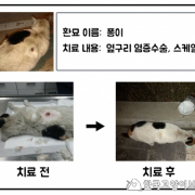 대상 : 장군루비맘님의 환묘 다롱이 치료지원 신청일 : 2018-03-30 치료후기 작성일 : 2018-04-09 후기 링크 : https://www.catcare.or.kr/rescue/2959760 작년 여름쯤 구내염으로 심각한 아이를 발견하게 되어 오랫동안 병원약을 복용하였음에도 불구하고 점...