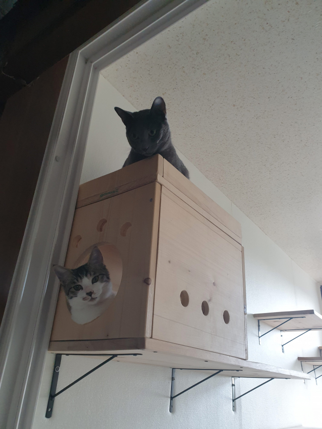 높은 곳을 좋아하는 행운이가 곳곳에서 즐겁게 놀 수 있도록 각 방마다 캣타워가 있고