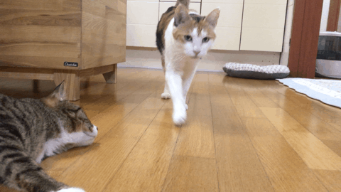 다가와서 치대는 냥이친구가 있으면 냥이친구가 속상하지 않게 슬그머니 자리를 옮기는 편이랍니다.