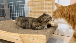 고양이언니오빠들을 너무나 좋아해서 처음만나는 성묘고양이에게도 겁 없이 다가가 인사를 한답니다.