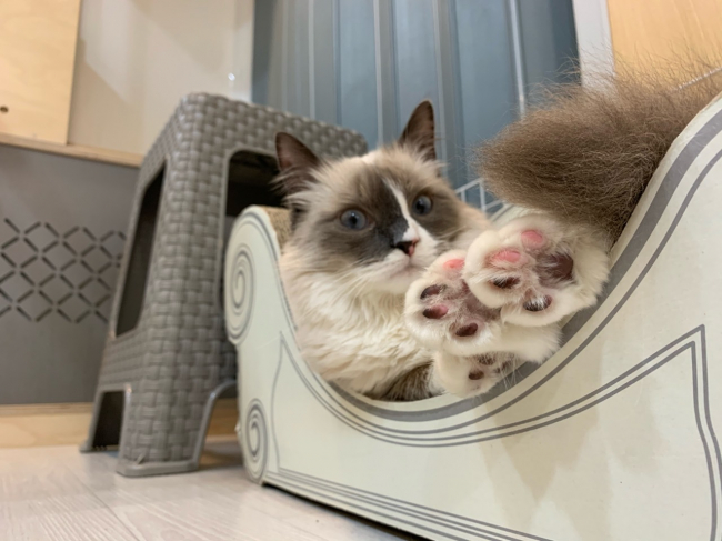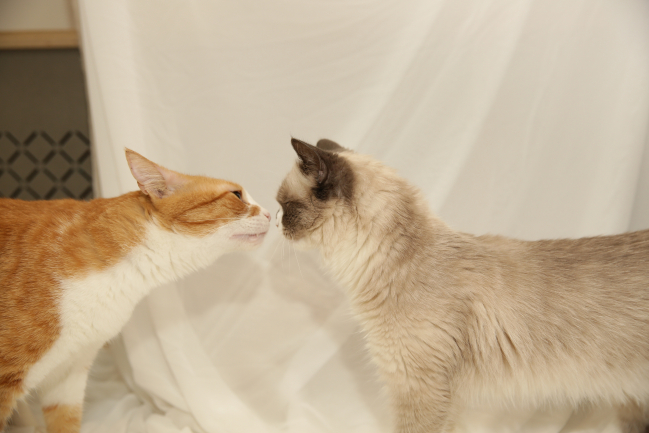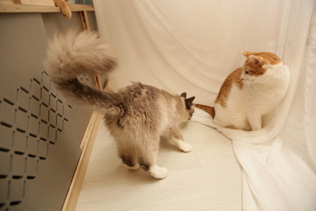 다른 냥이들과 마주치면 코뽀뽀를 시도할 만큼 유유자적한 성격이랍니다.