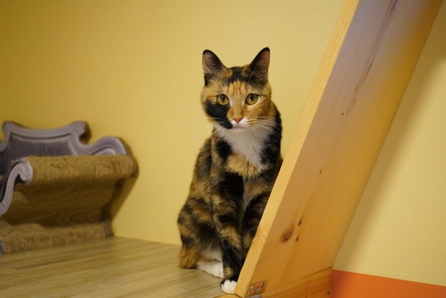 알록달록 삼색 카오스의 코트가 너무나 잘 어울리는 이쁜이는 코트처럼 다채로운 매력을 가진 친구랍니다.