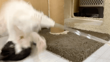 모든 선반과 캣타워점령을 끝내고 장난감도 모두 해치운 밤이..