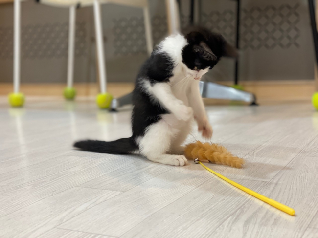 다른아깽이들에 비해 작은얼굴과 작은발로 장난감경쟁에서 밀릴 만도 한데
