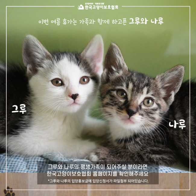 그루입양홍보글 https://www.catcare.or.kr/townadop/4380438 나루 입양홍보글 https://www.catcare.or.kr/townadop/4380481