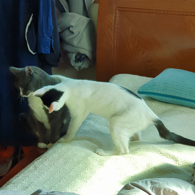 이런 귤이를 더 이상 보고만 있을 수 없었던 저는 올해 10월이 되던 날 1년 만에 귤이를 데려오게 되었습니다 쉼터에서도 친구들이랑 전혀 싸우지 않던 귤이었기에 집에 있는 고양이들과의 합사는 많이 걱정되거나 긴장되진 않았었고 생각대로 다 같이 잘 지내주기 시작했습니다 침대와 이불을 너무 좋아하고 장난감 놀이를 좋아하는 귤이는 여전히 감기로 인해 네블라이저를 하고 있지만 따뜻한 전기장판을 좋아해서인지 쉼터에 있을 때보다는 엄청 많이 나아져서 기침도 많이 안 하고 눈곱과 콧물도 많이 줄어들었습니다