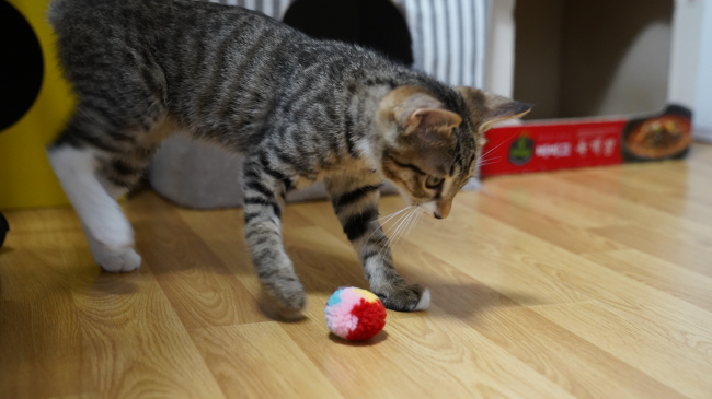오뎅꼬치, 낚시대 등 가리는 것 없이 장난감을 무척 좋아하고 새로운 장난감에도 관심이 많아서