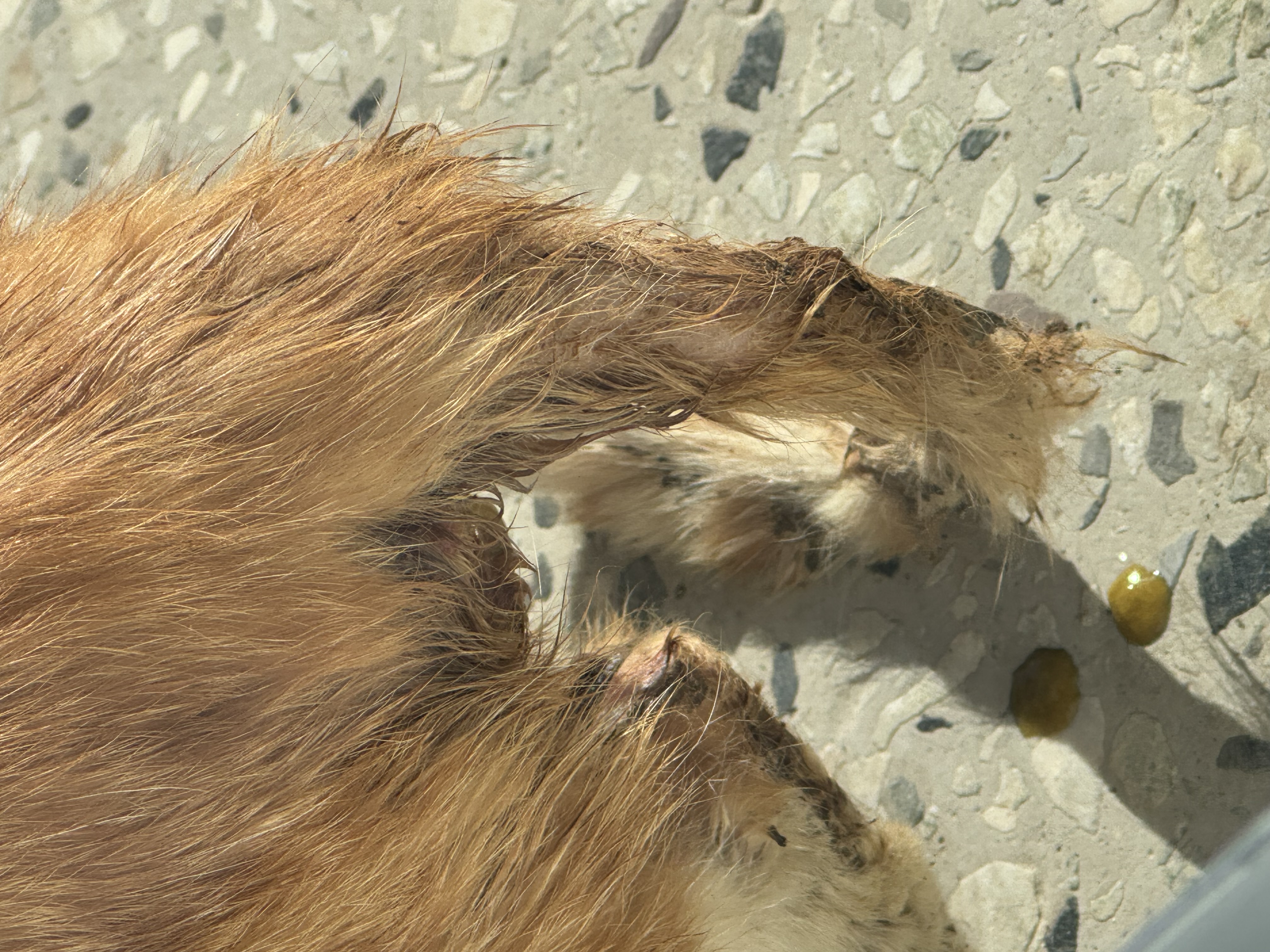뒷모습을 보니 엉덩이쪽이랑 꼬리, 뒷다리가 다 축축하게 젖어있고, 항문?쪽에서 고름인지 설사인지가 뚝뚝떨어져요... 사무실에 어래계신분말로는 암컷이고 새끼를 여러번 낳았던거 같다고하는데.... 중성화는 안되어있는거같아요.
