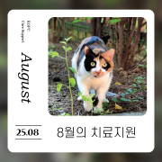 8월 한국고양이보호협회 고보협치료를 받은 길아이들입니다.   비록 누군가에게는 스쳐지나가는 아픈 길고양이일지 모르지만 이 아이들에게도 이름이 있고 사랑받고 치료를 받을 수 있는 존재임을 더 많은 사람들에게 알리고 싶어 협회치료를 받은 아이들의 ...