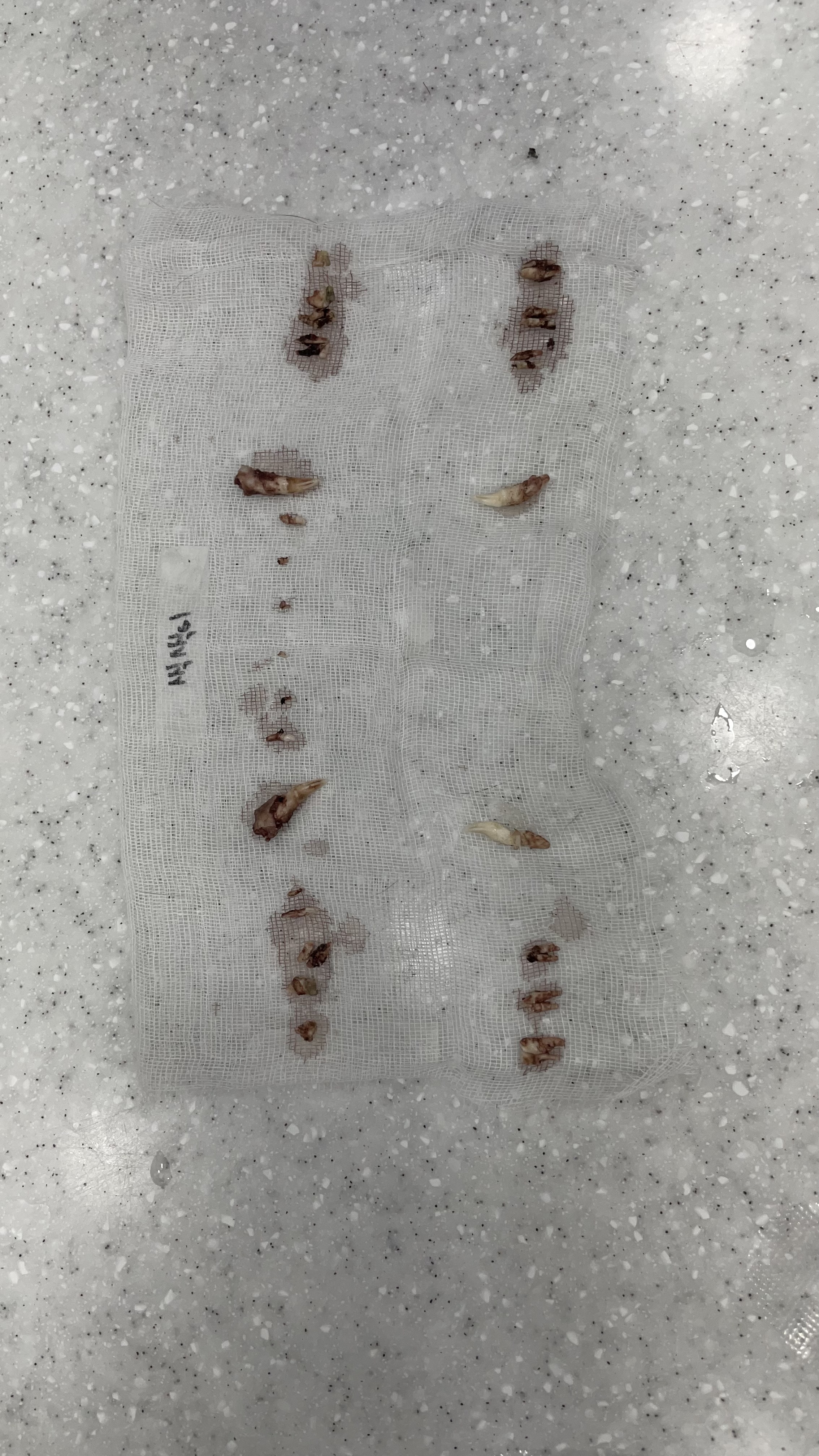치료과정 | 마취한 상태에서 보니 잇몸주변에 너무 염증이 심해서 건드리긴만해도 출혈이 되고 벌써 빠진 치아도 몇 개 있다며 선생님께서 보여주셨습니다. 씩씩이가 1년도 안된 어린아이인데 전발치를 해야한다는게 너무 가슴아파서 믿을수 없었지만, 씩씩이는 전발치를 하는게 좋아보인다 하고 고보협 치료지원 댓글로 예약잡아주시는 분들도 후기를 보내주셔서 전발치로 진행하기로 했어요. 이후에 씩씩이는 전발치 수술 무사히 마쳤고 밥을 무르게 해서 주면 그런대로 잘 먹고 회복했어요. |
