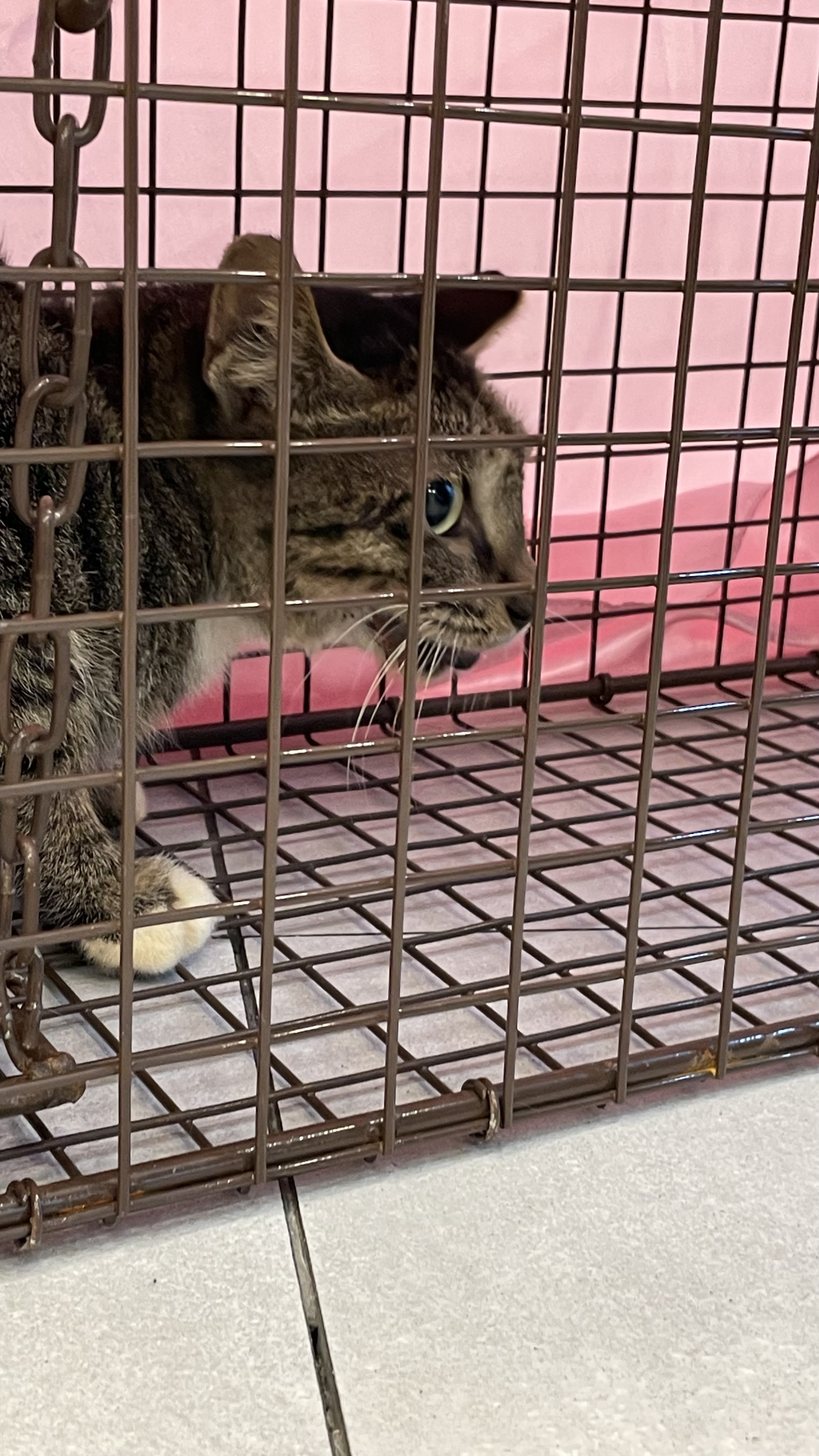 대상묘신청당시상태 | 첫 밥자리에서 발견 당시에 6개월 미만의 아기 고등어 고양이가 밥을 먹으러 오기 시작했어요. 저희는 고보협에서 공동구매한 사료를 먹이는데, 8월 중순부터 밥을 먹을 때마다 아픈듯한 비명소리, 켁켁거리는 소리가 들려와서 구내염을 의심하고 지켜봤어요. 침을 흘리거나, 침을 뱉는 행위를 하지만 꾸준히 밥을 먹으러 오는 걸 보며 좀더 기운이 생길 때를 기다려서 치료해주고자 마음먹고 10월 초 포획하였어요. |
