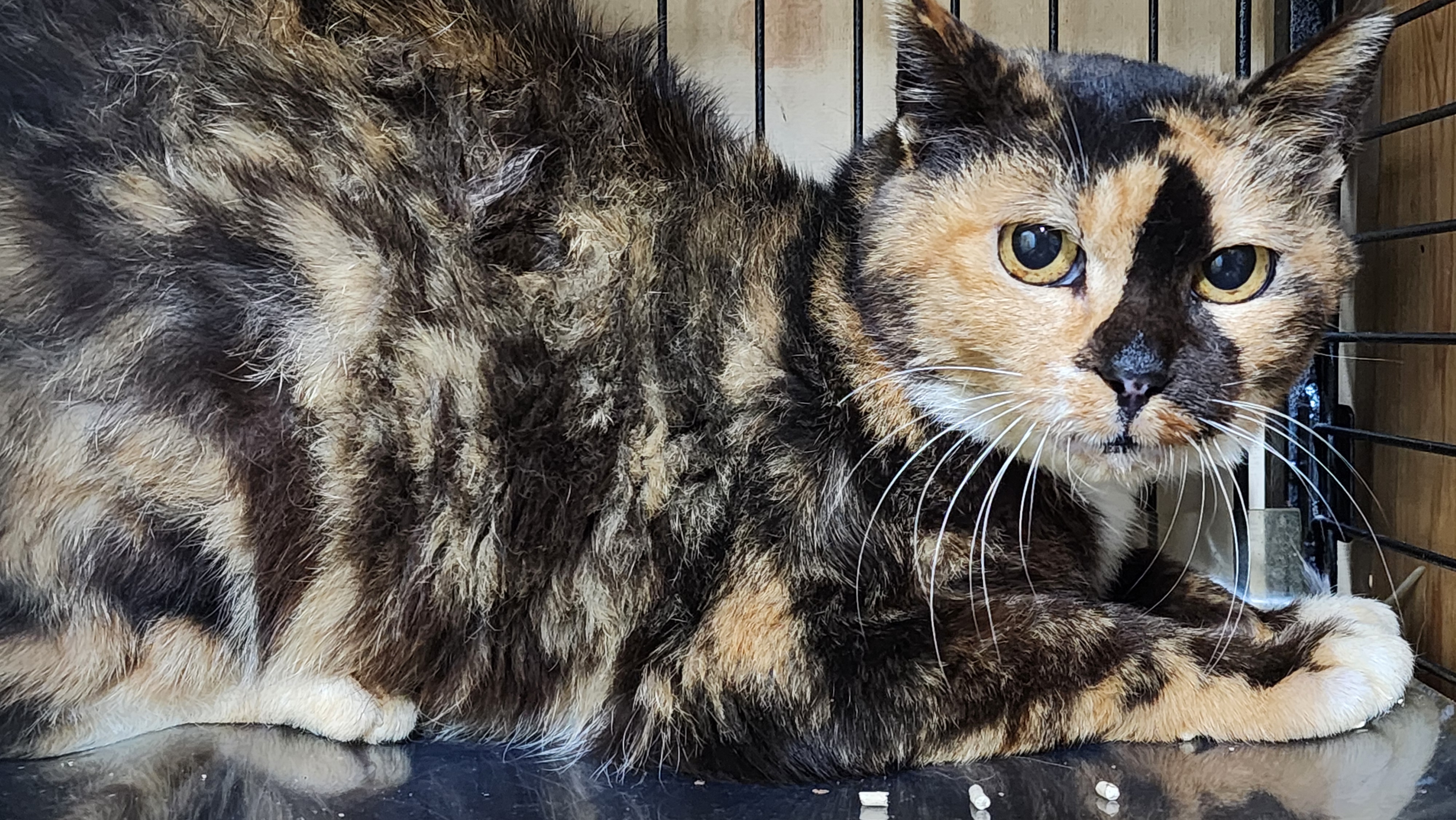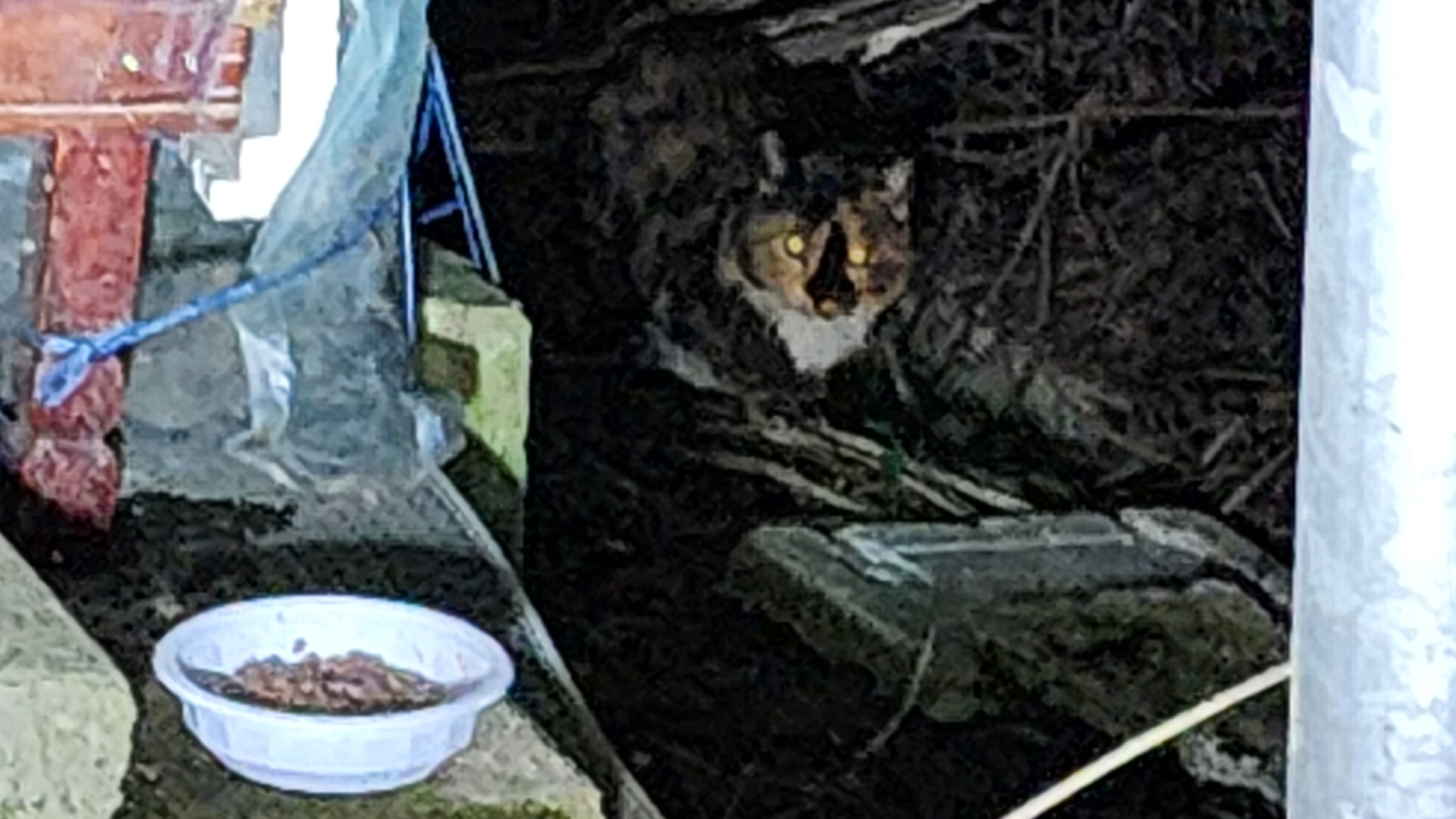 | 대상묘신청당시상태 | 작년 1월쯤 카오스 고양이는 제가 만들어 놓은 급식소에 밥을 먹으러 왔을 때 처음 본 냥이었어요. 작년에는 제가 일을 다녔기에 밤에 퇴근하고 집에 아이들 케어하고 난 뒤에 급식소에 나갈 수있었기에 늦은 밤 또는 새벽에 주로 다녀서 당시에는 카오스냥이의 상태를 알 수가 없었지만 누군가 급식기 바닥과 사료에 침을 묻혀놓은것을 확인하고 약밥을 챙겨가서 확인한바 카오스냥이가 혀바닥을 내밀고 있는것을 확인한 뒤 챙겼습니다. 제가 사는 동네가 아니어서 매일 많은 급식소를 챙길수는 없어도 급식소와 큰 급식기를 구비해 놓아서 이틀에 한 번씩은 가서 밥을 채우며 카오스냥이도 약밥을 챙겨주었어요. 그러다가 올해 2월이 되자 저는 퇴사를 했고 허리와 양쪽무릎 큰 수술 3가지를 하기 위해 병원에 입원을 했고 아이들 급식소는 지인께 부탁드려서 7월까지 사료와 물만 채워 주었습니다. 그러다가 올해 8월부터 제가 급식소에 나가게 되었고 예전에 제가 늦은밤에 다닌터라 아이들도 그 루틴에 맞춰서 제 차 소리가 나면 나타나거나 시간대에 와서 기다리곤 했는데 카오스냥이를 다시 본 것이 제가 급식소에 나가면서 8월 초쯤 카오스냥이를 보았습니다. 급식소에 있는 급식기 바닥에 침이 있고 사료에도 침이 묻은 알갱이가 있는것을 확인후 카오스냥이란걸 알게 되었어요. 제가 수술받고 재활하는동안 아이의 구내염은 더 진행이 된듯 털은 엉켜서 엉망이었고 많이 야윈상태여서 더는 약밥으로 저아이의 구내염을 관리하는것이 힘들다 판단하여 고보협에 신청하기도 전에 혹시나 하고 설치한 포획틀에 잡혔습니다. |