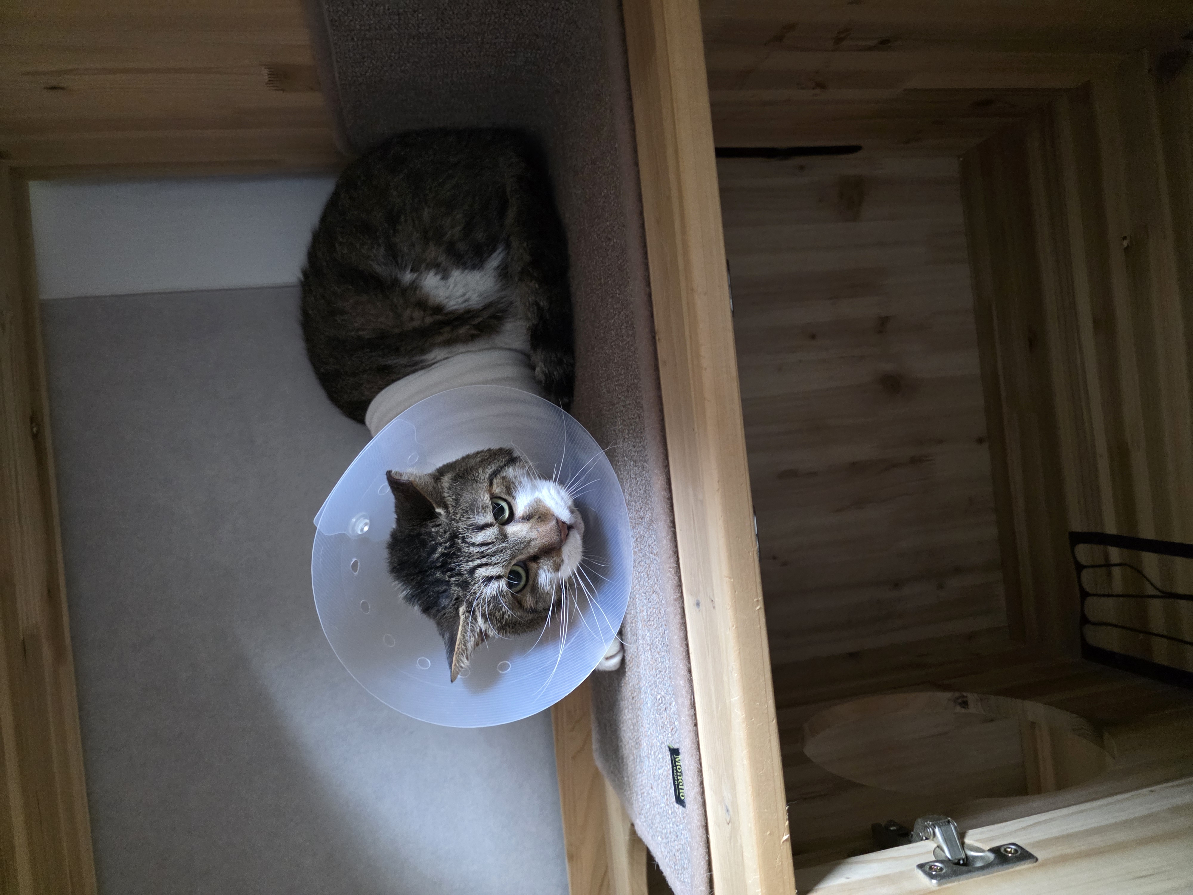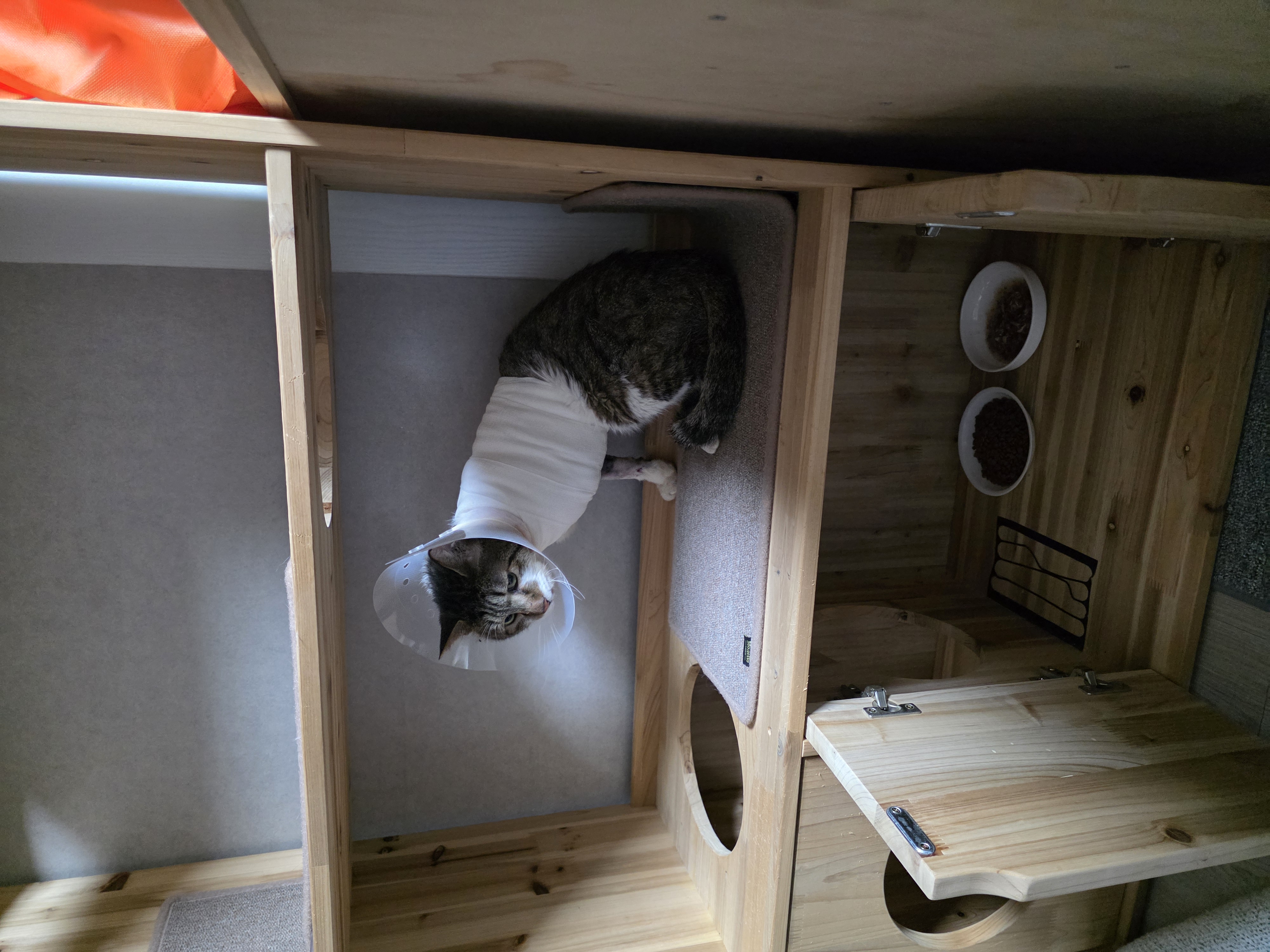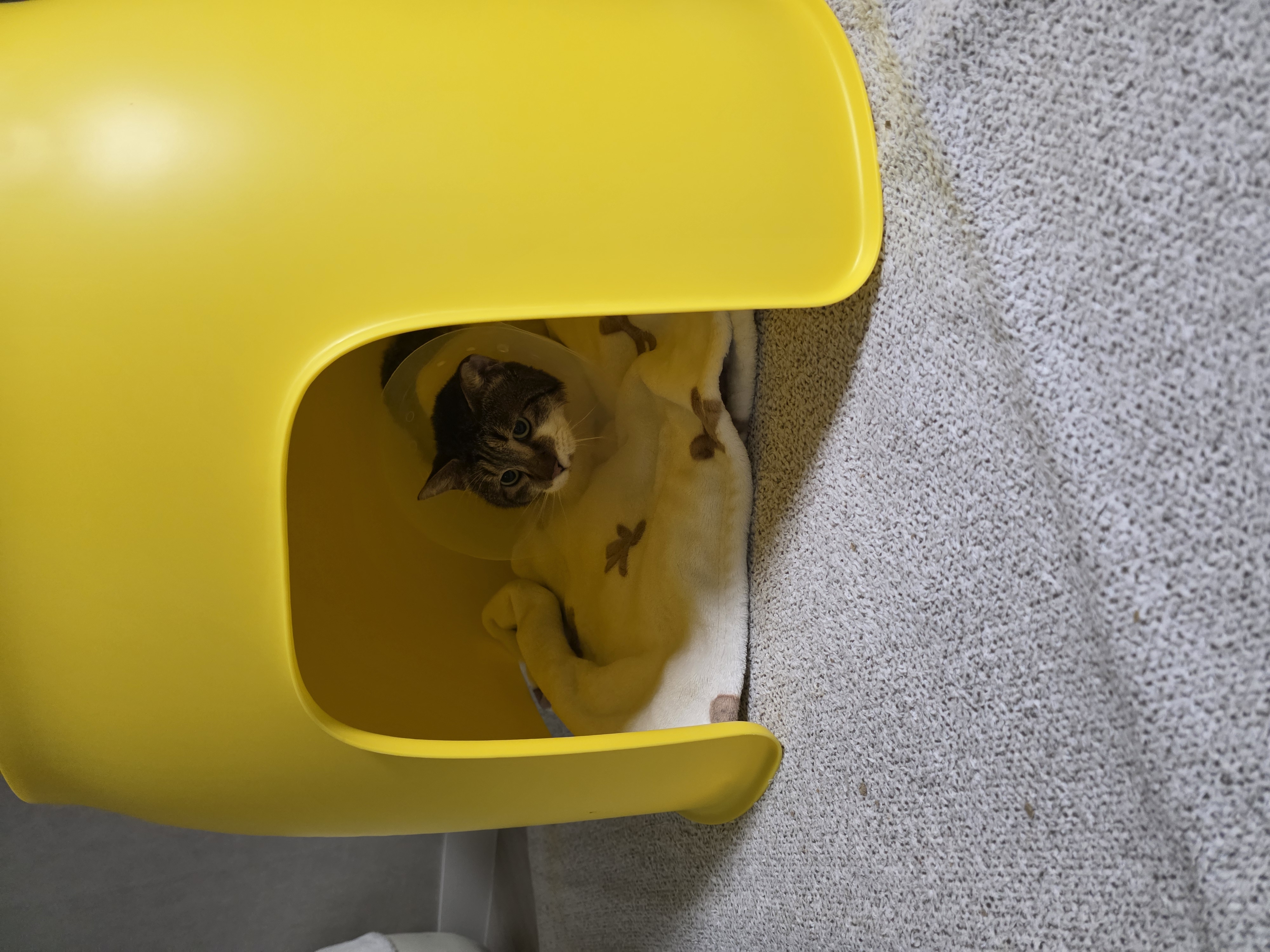 | 치료완료후 케어계획 | 치료만 하면 될 줄 알았는데 다리를 어깨까지 절단해야 한다는 말을 듣고 고민이 많았습니다. 임보한다고 해도 여기저기 몸이 성하지 않은 성묘여서 입양도 어려울것 같아 많은 고민의 시간 끝에 입양하기로 했습니다, 다행히 순한 성격이 보여 실내생활 적응 잘할 것 같아요. 아직은 하악질로 인사하는 단계이지만 실밥 풀고 넥카라도 빼면 조금더 좋아지지 않을까 희망을 가져봅니다^^; 구내염은 계속 지켜보고 약 복용해가며 상태체크해보겠습니다. |