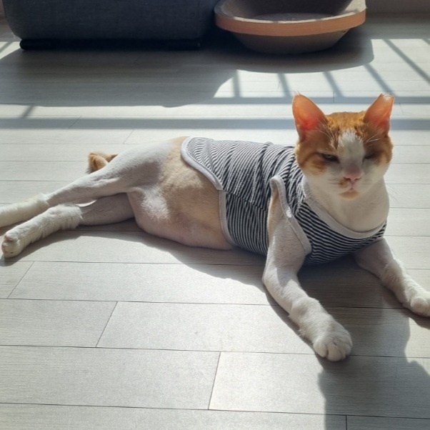 치료완료후 케어계획 퇴원 후 집으로 오게 된 유동이는 낯선 환경과 한쪽 눈으로만 보이는 답답해진 세상에 적응이 되지 않은 듯 행동반경이 좁아지고 움직임이 거의 없어졌습니다. 코로 숨을 쉬기는 하지만 원활하지 못한 호흡으로 사료를 먹을 때는 몇 번씩 목에 걸려 기침을 하고 틀어진 턱으로 인해 침을 흥건히 흘리며 음식을 먹습니다. 잘 때는 머리의 위치를 높은 곳에 올려 수면을 취했으며 호흡의 어려움으로 수차례 자다깨다를 반복했지만 조금씩 호전되고 있습니다. 4주 동안 항생제를 내복하고 코에 넣는 물약을 1일2회 외용한 결과 미열로 늘 뜨끈하게 느껴졌던 귀가 차가워졌고 항생제 복용이 끝난 후 식욕이 조금씩 늘어 자연스럽게 습식사료에서 건식사료로 바뀌게 되었습니다. 현재 하루에 건식2회 습식1회롤 적절히 조절해 가며 급여하고 있습니다. 25년11월14일 반려동물등록을 마치고 따뜻한 잠자리와 부족함 없는 식사와 깨끗한 물을 마시며 아침에는 유리창 아래 내리쬐는 햇살을 받으며 포근하게 잠을 즐기는 집냥이 유동이로 다시 태어나게 되었습니다.