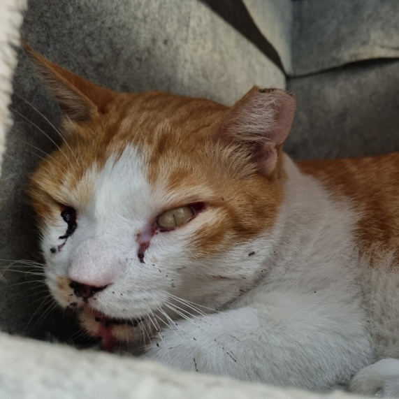 대상묘신청당시상태 저는 제가 구조하여 치료하고 입양을 마친 길냥이의 이름을 유동이로 지었습니다. 그 이유는턱 상악와 하악 모두 정중앙이 쪼개져 당분간은 유동식만 먹어야 한다는 수의사 선생님의 말씀을 듣고 지은 이름입니다. 유동이를 처음 만나게 된 시기는 24년 6월경으로 장마가 시작될 무렵이었고 그때부터 사고가 나기 전까지 1년이 넘도록 하루도 빠짐없이 밥을 챙겨주었습니다. 다른 길냥이와는 다르게 사람의 손을 두려워 하지 않았으며 밥을 챙겨주는 저에게 헤드번팅으로 매일 반갑게 반겨주는 애교가 넘치는 착하고 예쁜 고양이였습니다. 사람과의 친밀도로 보아 유기묘로 추측되었으며 나이는 4~5살로 추정되었고 이따금 영역다툼으로 몸에 상처가 나서 나타날 때도 있었습니다. 어느날 늦은 저녁 평소와 다름없이 같은 시각에 밥을 챙겨주러 유동이를 찾았지만 보이지 않았고 다른 길냥이를 챙기고 다시 유동이의 밥자리로 돌아왔을 때 심하게 다친 유동이를 발견하게 되었습니다. 우선 안전한 곳으로 유동이를 옮기고 피를 닦아준 후 물을 먹여보려 했지만 한모금도 먹지 못했고, 유동이가 안정을 찾는 동안 진료와 수술을 담당해주실 수의사 선생님을 수소문했고 밤새 상태를 지키며 곁에 있어주었습니다. 유동이 발견 당시 눈과 코에서는 피가 흘러 말라 있었고 입에서는 침과 피가 섞여 흘러내리고 입은 다물지 못할 정도로 부어있었습니다. 왼쪽 안구는 외부층격으로 인해 부어있었고 동공은 어두운 곳에서도 수축되어 제 기능을 하지 못해 보였습니다. 안면부 왼쪽으로만 부종이 있는 것을 보고 누군가에 의한 학대 혹은 교통사고를 의심하지 않을 수 없었습니다.