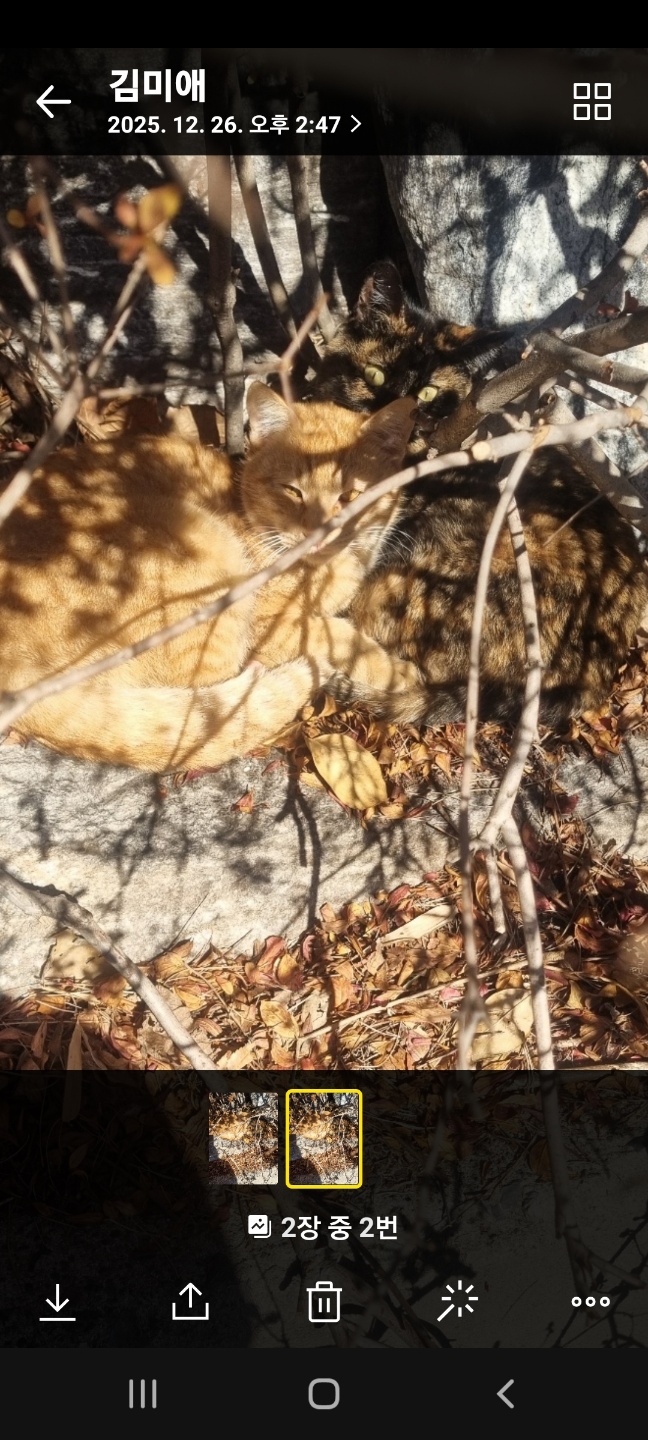 | 치료완료후 케어계획 | 원래 생활하던 자리로 방사는 하였으나 날씨가 많이 추워서 밥자리와 고보협 겨울집에 핫팩 등으로 잘 관리 할 예정입니다. 휴일날은 다른 직원들도 함께 돌보고 있어서 치료후 챙겨야 하는 약들도 잘 먹이고 챙기겠습니다. 퇴원후 따뜻한 햇볕 쪼이면서 친구들과 함께 있는 카오스가 행복해 보이는 아침입니다. 구조후 고보협에 도움을 받게 되어 죄송하고 미안한 마음이지만 아이가 이곳에서 건강하게 생활할 수 있도록 잘 챙기도록 하겠습니다 밥자리로 돌와서 만난 친구들이 반가운지 서로 의지하며 쉬고 있어서 단잠을 깨는거 같아 다른 장면의 사진을 찍진 못했습니다. (사진은 아이 상태봐서 추가해서 더 올리도록 하겠습니다) 감사합니다 . |