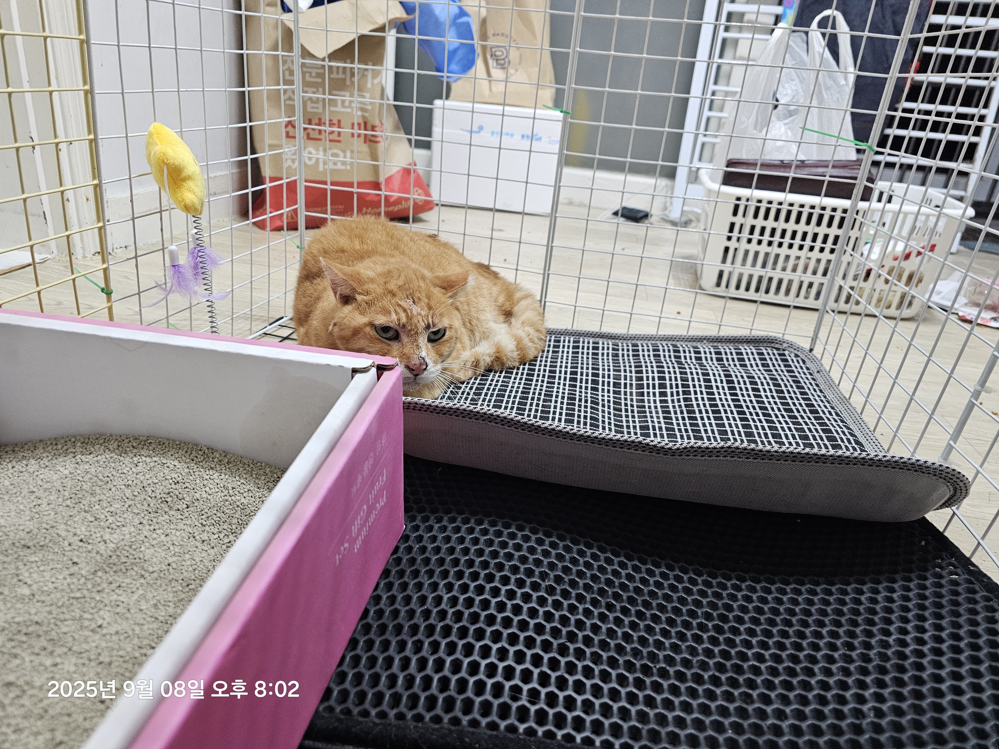 | 치료완료후 케어계획 | 현재 레몬이는 원래 살던밥자리동네가아닌 거주하던곳 반대편동네 캣대디가 관리하는 급식소에서 머무르고 있습니다. 거기에 자리를 잡고 있는데요 기존에 살던곳은 재개발로 확정되어 그리로 옮겨야하나말아야하나 이고민도했었는데 옮긴밥자리에 정착해서 사는모습을 확인해서 거기에 두려고 합니다. 혹 거기아이들과 다툼이 있으면 캣대디와함께 포획해서 원래살던곳에 다시방사하기로했습니다. |