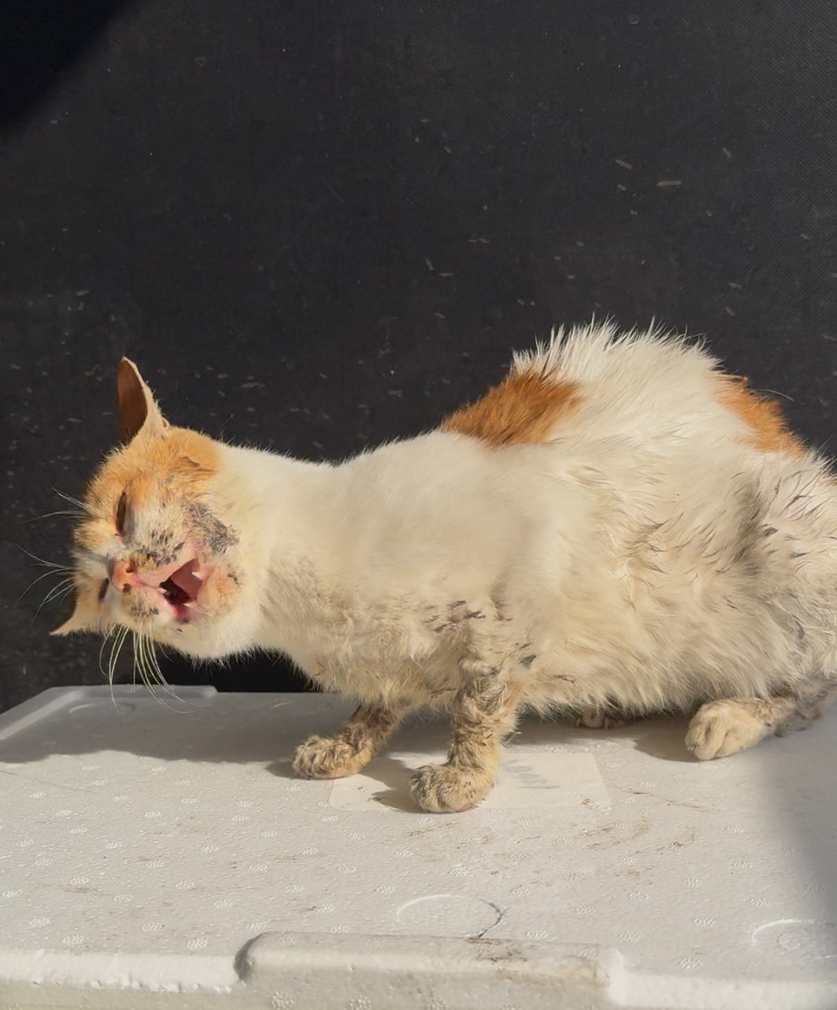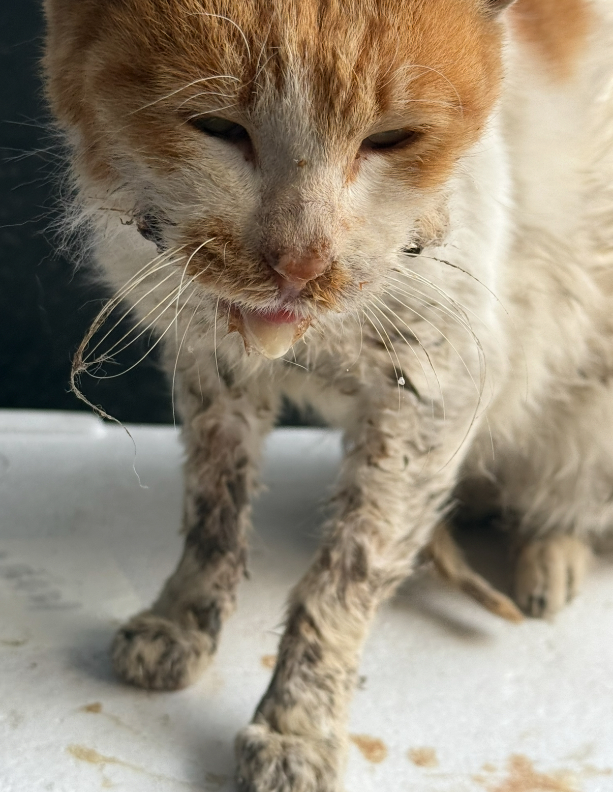 | 대상묘신청당시상태 | 길고양이 미미는 처음 만났을때부터 구내염이 아주 심한 상황이엿습니다. 피과 침을 항상 흘리고 있었으며 죽처럼 물에 불려준 사료도 잘 먹지 못해 거의 가죽과 뼈만 남은 상태였습니다. 사람이 많이 지나다니는 곳에 살고 있어 저 말고도 미미의 밥을 챙겨주시는분들이 있었지만 상태가 너무 안좋아 밥을 잘 못먹는 상태였습니다. 통증으로 인해 잠도 잘 못자고 항상 아파해서 처음에는 약국에서 약을 타먹였습니다. 처음에는 통증이 일부 해소되는듯 보였지만 치료 개념이 아니고 이후에는 약효도 듣지않았습니다. 게다가 날도 계속 추워지고 있어 이 몸으로 겨울을 나는건 불가할거라는 생각이 들어 수술하는것으로 방향을 정하게 되었습니다. 다행인점은 미미가 고통이 심했지만 음식을 먹는의지 사람과 친화력이 좋은 고양이여서 수술 후 회복시키는것을 결심할 수 있었습니다. |