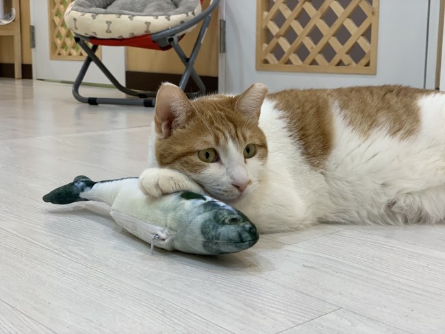 쫄랑이도 입양센터의 신상! 생선 쿠션을 아주아주 좋아해요~