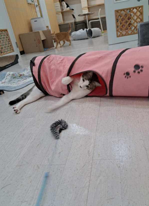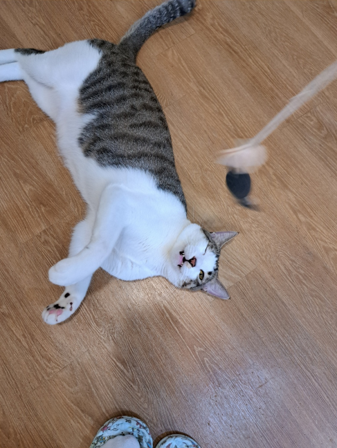 청년 고양이답게 엄청난 체력을 자랑하며 장난감 놀이를 무한으로 즐기고 싶어하는 것이