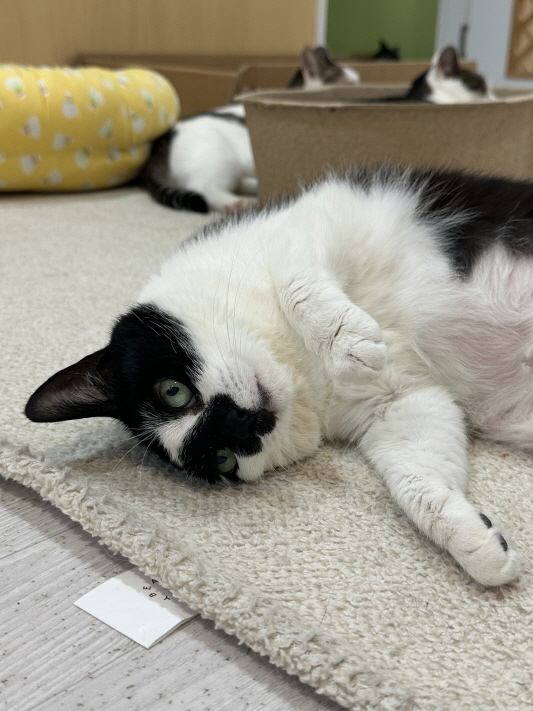 쫄랑이도 까비를 따라서 배를 보여주고 있어요.