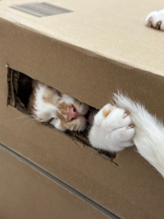 택배 확인할 때 봉투에 들어가서 뒷정리 못하게 만들기,
