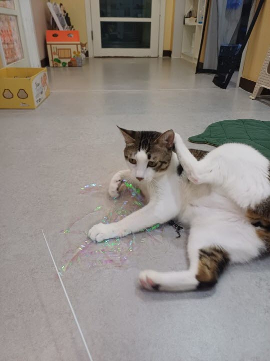 그래도 센터 그 어떤 냥이 못지 않게 치봉이는 놀이 활동들을 즐기며 지내고 있어요.