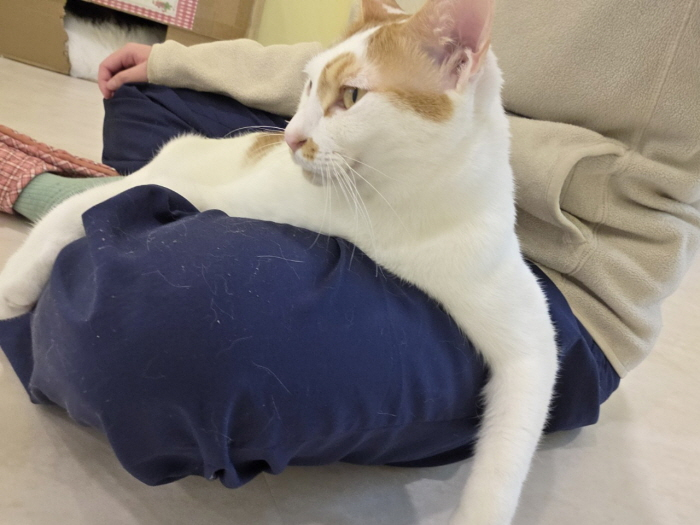 이렇게 사람 무릎에 올라와서 그 누구보다 편한 자세로 쉬는...