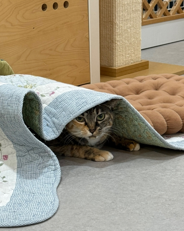 매트를 파고들어서 저 자리에서 저희를 관찰해요.