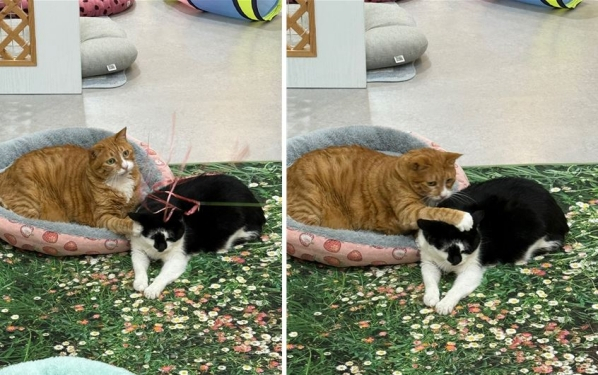 서로 그루밍도 해주고 복도 놀이시간마다 늘 붙어있어요.