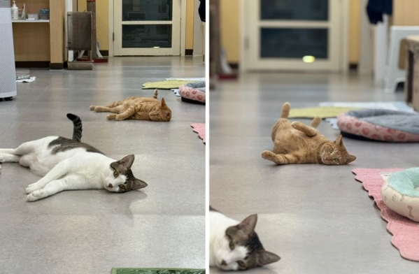 복도에서 뒹굴거릴만큼 귀여운 모습을 보여주고 있습니다.