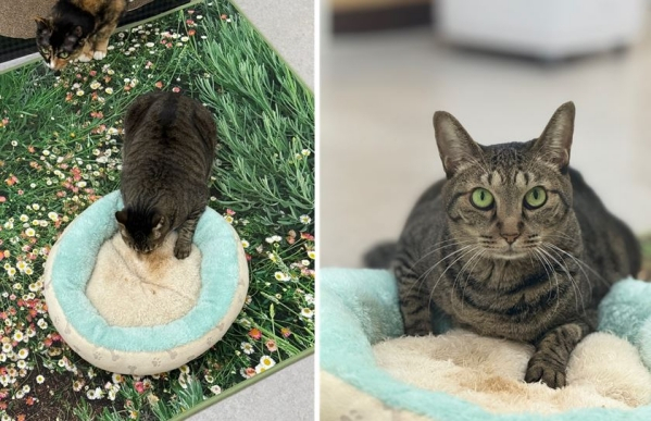 방석과 매트가 마음에 들었는지 살포시 누웠어요.